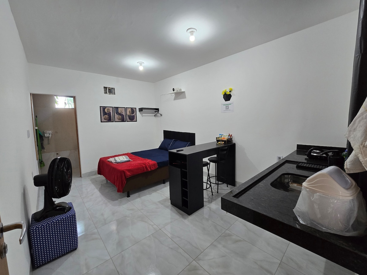 Aquest espai especial és a prop de tot. Habitació amb televisor, aire condicionat. Minibar, microones, taula de menjador, sofà, bany acollidor, dormitori amb 2 llits dobles, aire condicionat i butaca. Wifi, garatge per a dos cotxes, tanca elèctrica, porta electrònica. És a 2,5 km de 44th Street (centre de roba), l'estació d'autobusos i un centre comercial. A prop hi ha restaurants, pizzeries, supermercats, fleques, bars, discoteques i un mercat de puces els diumenges a la cantonada del pis. És a la frontera amb el centre de Goiânia, a prop de l'aeroport.