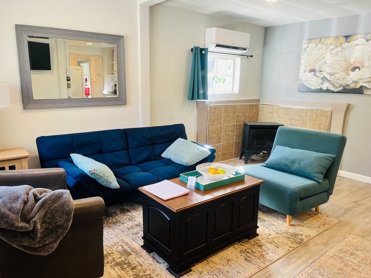 La nostra caseta d'1 dormitori és perfecta per a un viatge ràpid a les muntanyes o una escapada romàntica. Situat a minuts de Lakes Basin i del Majestic Sierra Buttes. Et donem la benvinguda a The Lost Sierra. Juga tot el dia i calenta't al costat del foc de l'estufa de llenya, acurrucat amb un llibre o gaudeix d'un sopar i compres a Graeagle, a 4 minuts. Si les activitats a l'aire lliure et porten aquí, gaudeix de rutes de senderisme, ciclisme i caiac. Estem a només 2 blocs del riu Feather, agafa la teva caña de pescar i prendre una beguda i pescar el sopar.