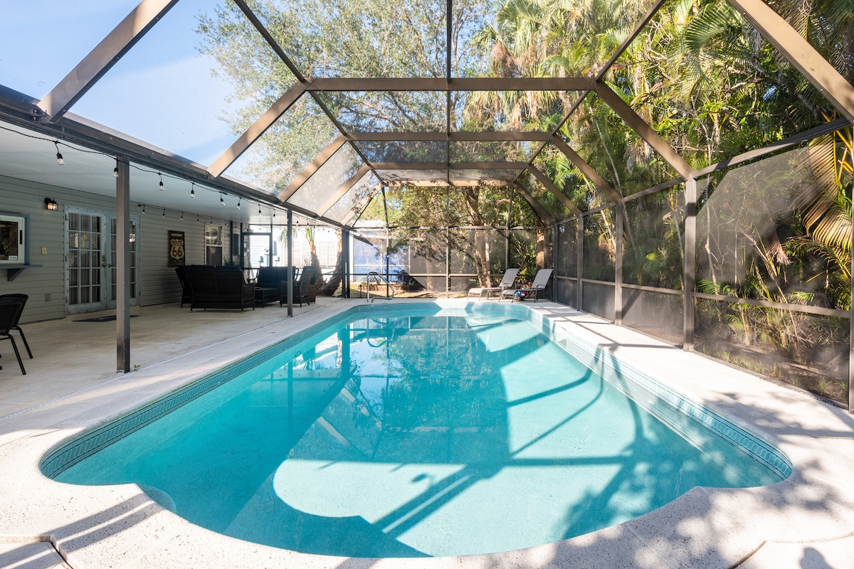 Escapa't a la nostra encantadora casa unifamiliar, on la comoditat es troba amb el luxe en un entorn serè. Aquest encantador refugi té tres dormitoris espaiosos, perfectes per a famílies o grups que busquen unes vacances relaxants. Surt a descobrir el teu oasi privat: una piscina climatitzada a terra amb una banyera d'hidromassatge, ideal per relaxar-te després d'un dia d'exploració, gaudir d'un sopar a l'aire lliure, amb un ampli seient per assaborir els àpats mentre gaudeixes de les boniques postes de sol de Florida.