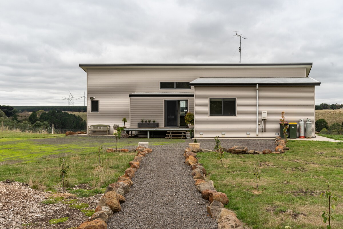 Situada als pintorescs turons ondulats de Morrisons, aquesta granja de 38 hectàrees és la escapada perfecta per a famílies, parelles i grups petits. Amb capacitat per a 8 adults i una catifa de porter per als més petits, gaudiràs de l'allotjament perfectament equipat i de les impressionants vistes de l'ampli pati exterior. Les ovelles, els cavalls, les cabres, les gallines i els gans seran els teus únics veïns en aquesta ubicació impressionant, a només 7 km del municipi més proper, a 45 minuts de Geelong i a 30 minuts de Ballarat.