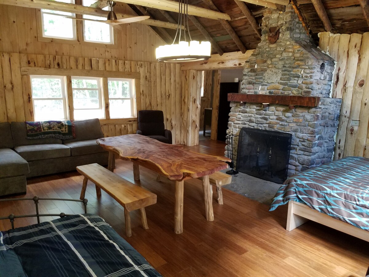 382 Torna a Sodom Rd. Wifi, activitats per a famílies i platja. T'encantarà el meu espai pels seus sostres alts, la ubicació, la comoditat i les vistes. Construït per un artesà local amb troncs de la nostra zona i pedra del riu local per a la llar de foc. La caseta està completament modernitzada. Un porxo encantador que mira cap a l'estany i els llums exteriors al llarg de l'estany. Minuts per a totes les activitats a l'aire lliure. S'ha de pagar una tarifa de 75 $ per mascota en el moment de fer la reserva. Has de portar mantes de gos!
