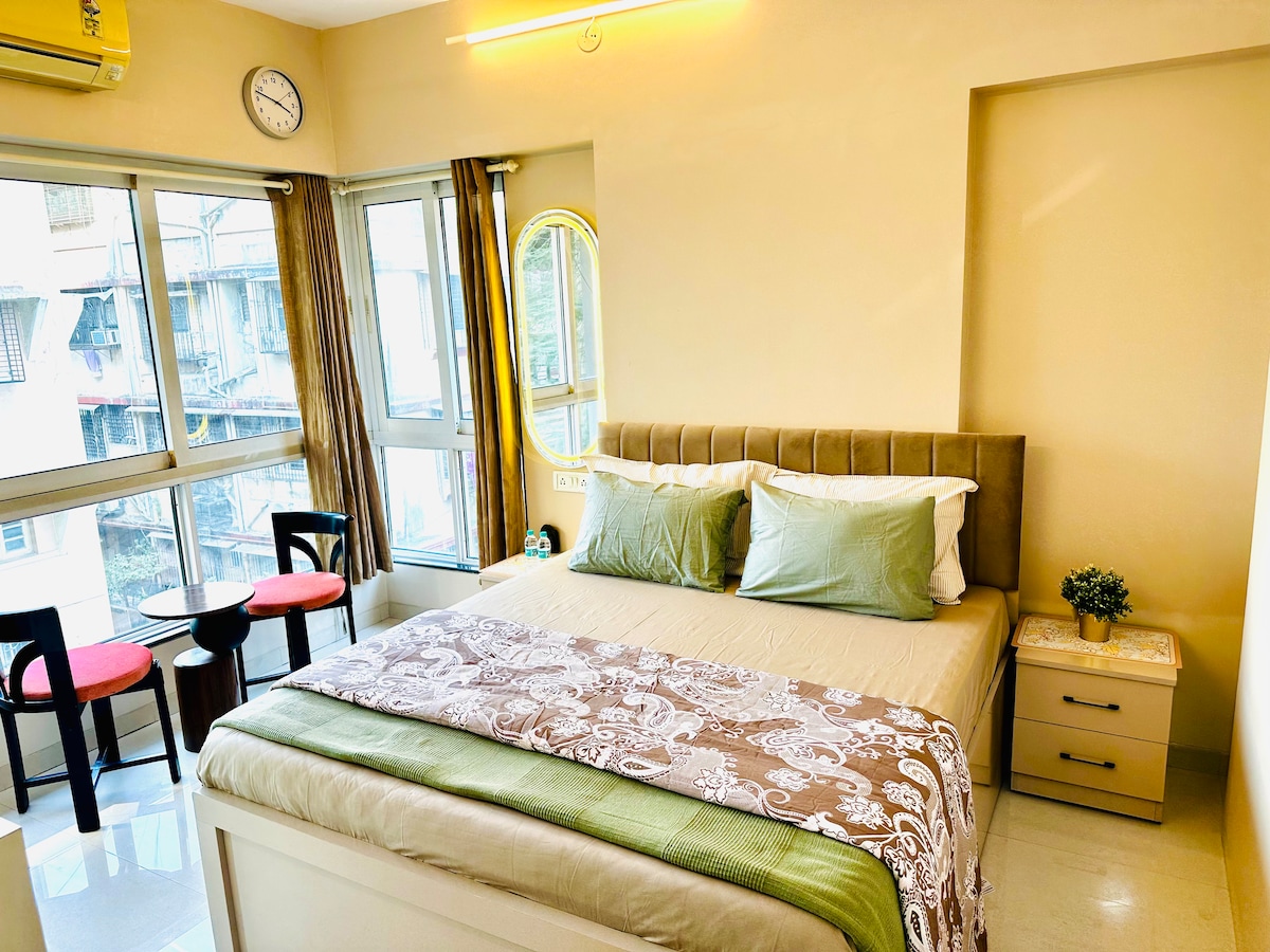 Acollidor estudi a Borivali East, a pocs passos del Parc Nacional Sanjay Gandhi, a 5 minuts a peu del metro i a 10 minuts de l'estació de tren, amb accés fàcil a les platges de Gorai i Manori i a la Pagoda Global Vipassana a través del moll. A prop del centre comercial Oberoi Sky City per anar de compres i menjar. Ideal per a viatgers de negocis o de lleure, parelles i famílies petites. Gaudeix de wifi, aire condicionat, cuina modular, geiser, purificador d'aigua, nevera, microones, placa d'inducció i televisor intel·ligent amb Netflix i molt més.