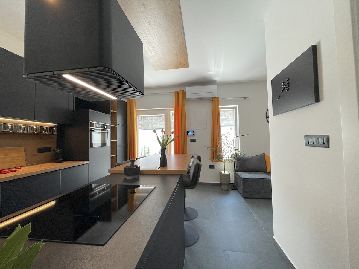 El nostre apartament, còmode i lluminós, està decorat amb molt d'estil i ofereix espais a l'aire lliure. Pots relaxar-te al jardí mentre esmorces o gaudeixes d'una barbacoa familiar. Situat al turó orientat al sud de Monte Paradiso, t'ofereix les platges i les badies més boniques a només 10 minuts a peu. El pis té una cuina totalment equipada i un bany nou. Passa- t'ho bé amb els nombrosos programes de televisió per satèl·lit de dues habitacions o connecta't al teu compte privat de Netflix!