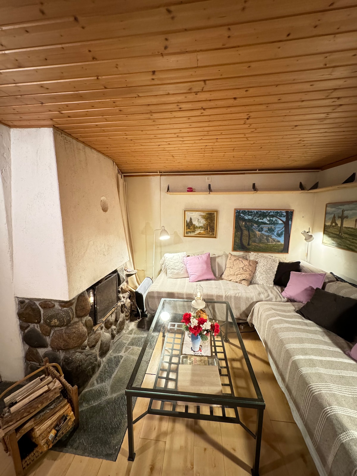 Neteja, roba de llit i tovalloles incloses. Zona tranquil·la a la natura amb cuina completa i cuina exterior, llit elàstic, gronxador, rentavaixelles, rentadora, assecadora, aire condicionat, terrassa, graella, projector de televisió, carregador de vehicles elèctrics, aparcament gratuït. Jacuzzi (consultar disponibilitat) o sauna privada (sempre disponible): 600 SEK/dia, descompte per a més d'un ús. 30 m² + 15 m² altell per dormir segur per a nens: llit de 2 plantes (140+90), sofà llit de 120 cm, matalàs de 140 cm, 2×90 cm. Viatge en vaixell: https://air.tl/IyysCYpY Mar: 5 km, Botiga: 1,5 km, Bus: 400 m, Golf: 2 km
