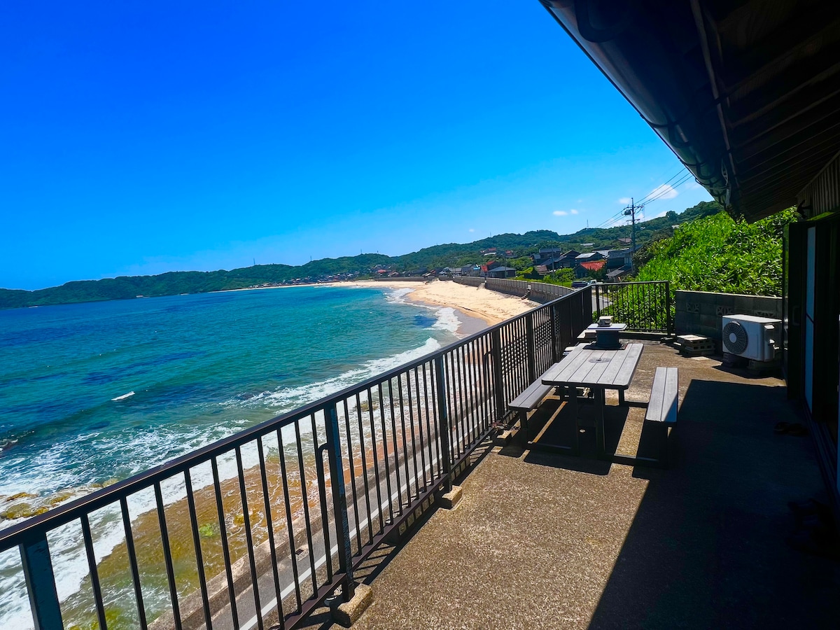 Aquest és un apartament de dues plantes amb un estil retro nostàlgic. Com el seu nom indica, està situat al mar i es pot accedir a la platja de Kotogahama, famosa per la seva «sorra cantada», en 0 minuts a peu.Fa molts anys que faig servir una vil·la, però ara m'he decidit a compartir aquesta vista. Davant teu hi ha la platja de Kotokehama, famosa pel so que fa quan hi camines. Amb un curt passeig, pots experimentar el pintoresc paisatge urbà i la natura circumdant, que és reconeguda com a Patrimoni de la Humanitat. A més, a la cantonada d'Iwami Ginzan, pots sentir l'ambient i la història de la ciutat, i "Onsenzu Onsen", on pots emmagatzemar alimentació a la teva ment i al teu cos.