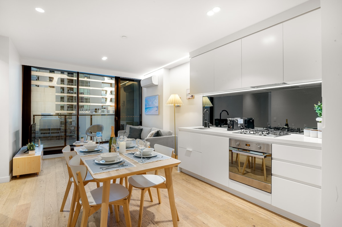 Aquest apartament del centre de la ciutat, modern, luxós i amb totes les característiques de la planta superior és teu per a la reserva. Situat a 500 metres de Victoria Markets, just a la vora del districte financer de Melbourne, a 1 km de Lygon St Carlton, a poca distància en tramvia de Sydney Rd Brunswick o a poca distància en uber de Smith St o Brunswick St Fitzroy/Collingwood. Completa amb balcó privat, piscina d'estil complex hoteler i spa amb accés a sauna, gimnàs i una plaça de cotxe segura i emmagatzematge de bicicletes.