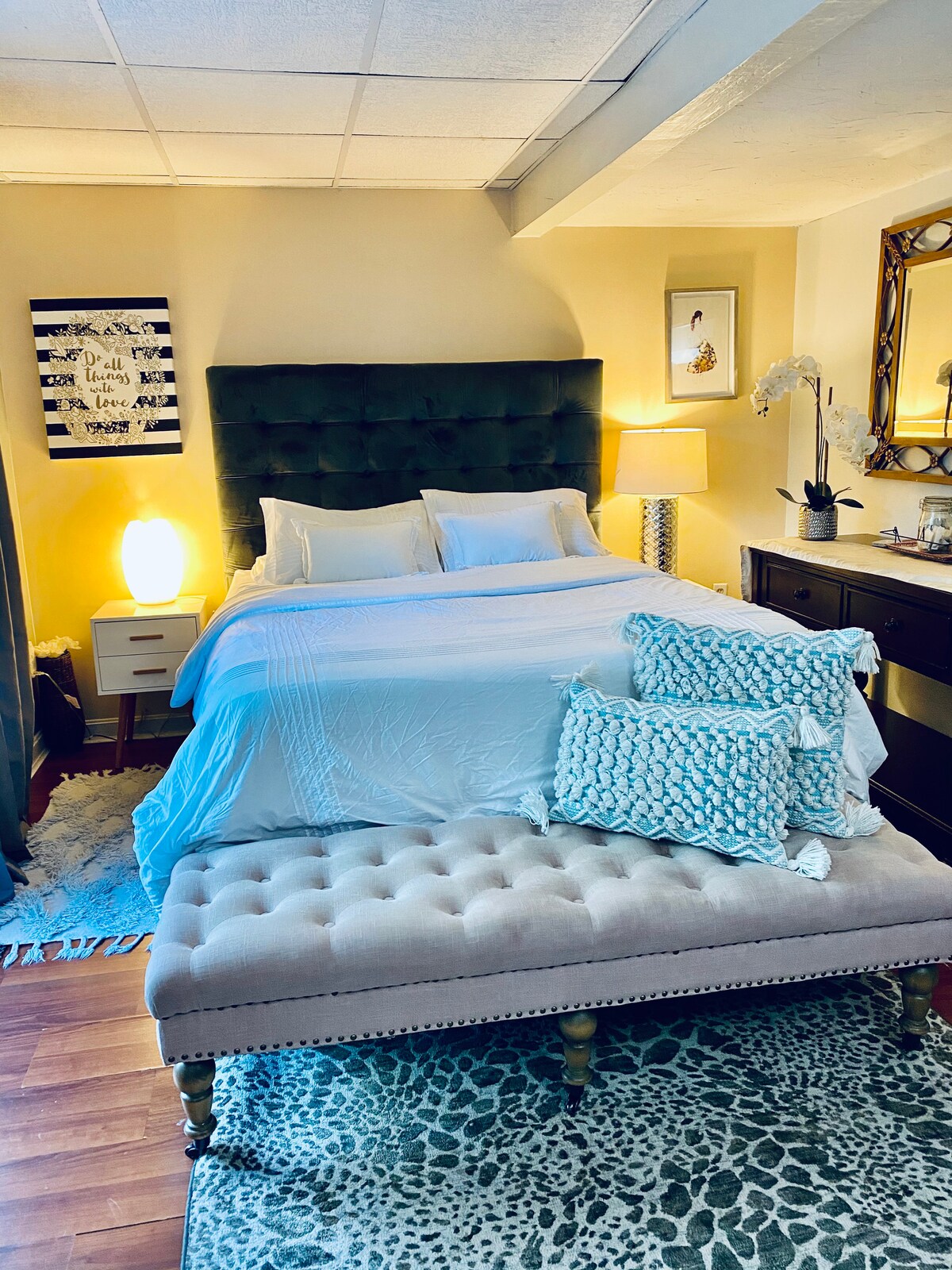 Situat a la ciutat de Shrewsbury, Massachusetts i a menys d'un quilòmetre de UMass Memorial Health- University Campus i UMass Chan Medical School, el nostre apartament de segona planta totalment moblat, dissenyat amb bon gust, combina luxe amb comoditat i té la seva pròpia entrada privada. El nostre apartament té una planta lluminosa i espaiosa, cuina gourmet, electrodomèstics d'acer inoxidable, terres de fusta, aire condicionat central i rentadora/assecadora a l'allotjament.