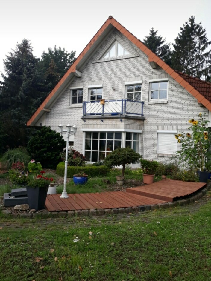 La nostra casa es troba a la frontera de Bremen Nord, al poble de Werschenrege. Envoltat de prats, pàrquings i boscos, podràs gaudir de la natura. Al mateix temps, també es pot arribar al centre de Bremen en 20 minuts en cotxe. La casa, totalment reformada, té 3 dormitoris, 1 bany, 1 aseo per a convidats, un ampli menjador, un ampli saló i una nova i moderna cuina amb una gran finestra que dóna al ampli jardí.