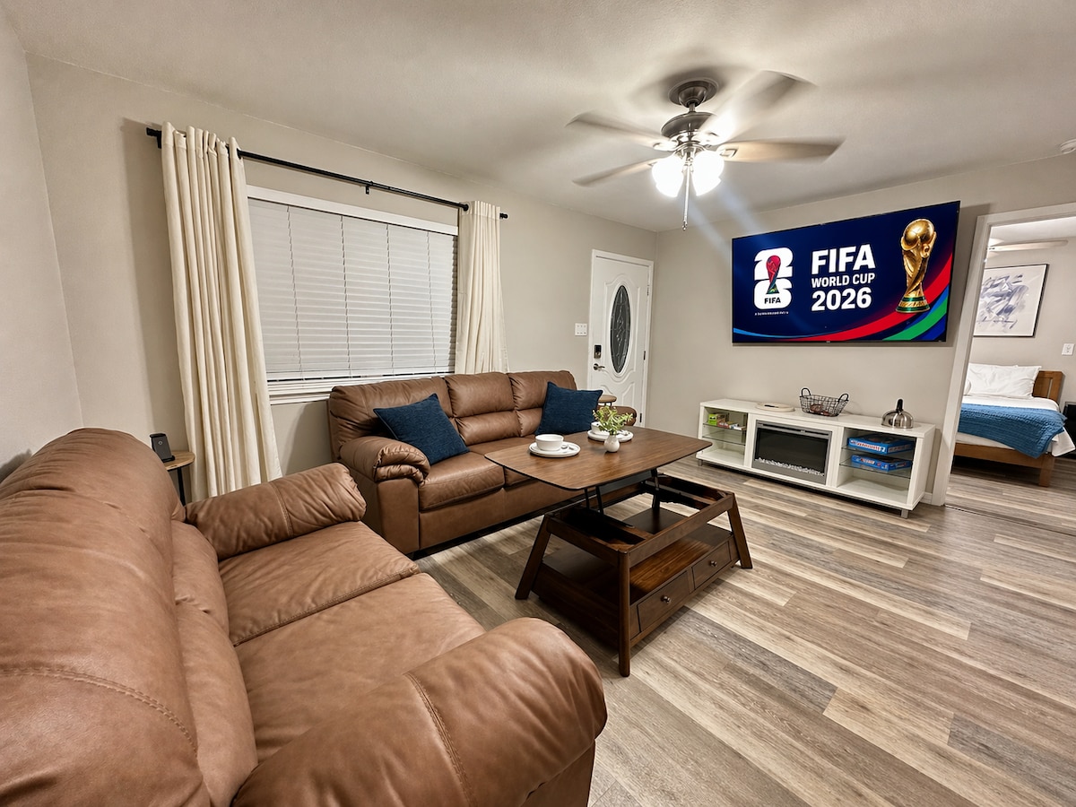 Vine a gaudir d'una estada relaxant CONVENIENTMENT UBICADA a prop de diverses atraccions de DFW, incloent-hi AT&T PARK (FIFA CUP)/Ranger's Stadium, SIX FLAGS/Hurricane Harbor, l'aeroport de DFW, Dickies Arena i DT Dallas! Aquesta casa enorme i espaiosa és PERFECTA per venir amb un grup d'amics o familiars en un barri TRANQUIL·L! Vine amb la teva família i gaudiu d'algunes de les activitats més divertides de Dallas! Després, torna i gaudeix de la sala de cinema, que disposa d'un televisor OLED de 77 polzades amb SO DE CIRCUMSTÀNCIA! NÚMERO DE PERMÍS: STR-25-000178