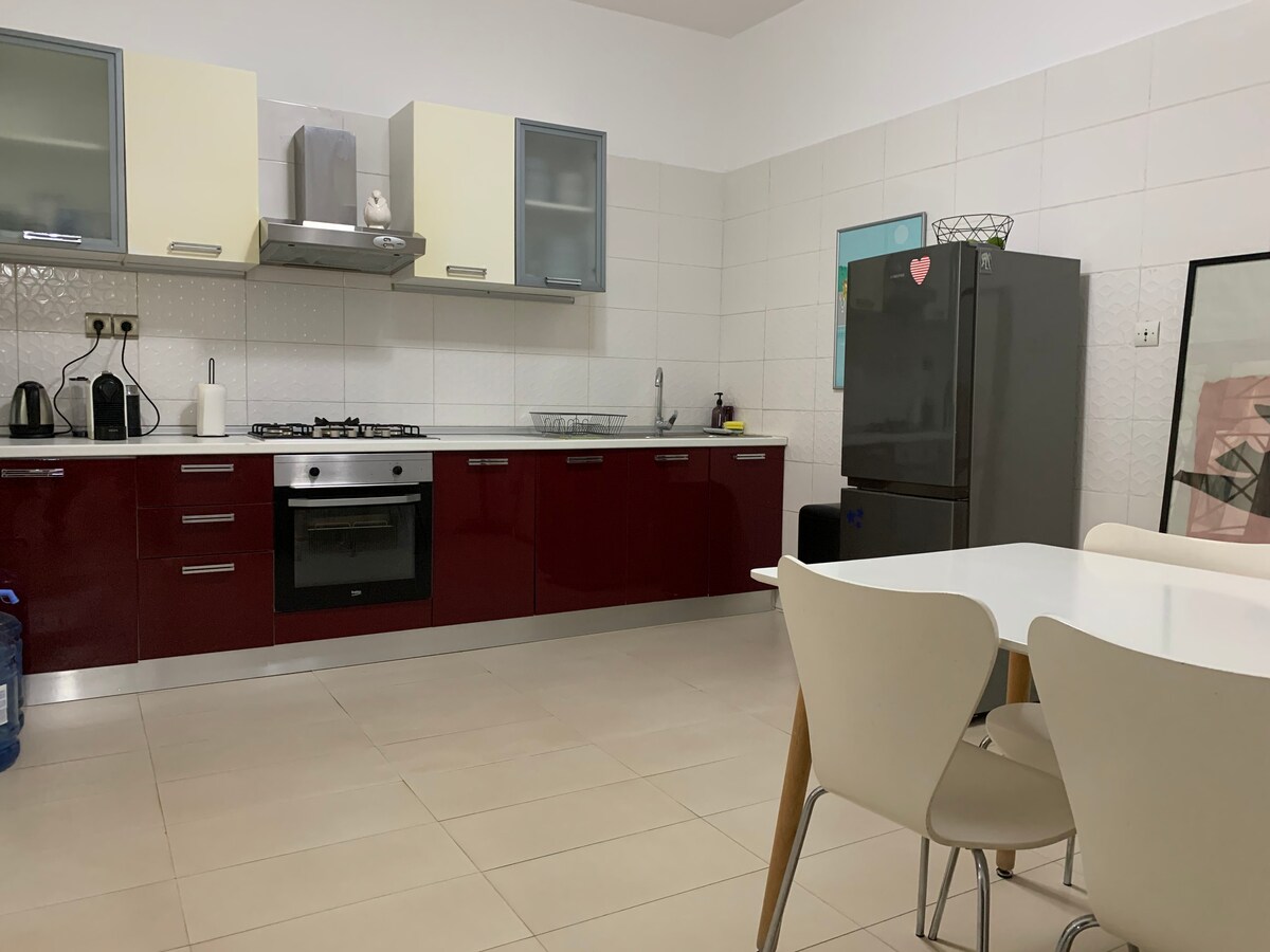Apartament modern i totalment equipat d'1 dormitori de 45 metres quadrats al cor de Dakar, darrere de l'estadi LSS. Pis totalment reformat amb 2 banys i cuina amb rentadora nova, microones, nevera i forn. Gran sala d'estar amb sala d'estar i taula de menjador que és ideal per allotjar hostes. Hi ha aparells de aire condicionat, wifi i cable disponibles. Ideal per a nòmades digitals o una escapada en parella. Electricitat inclosa.
