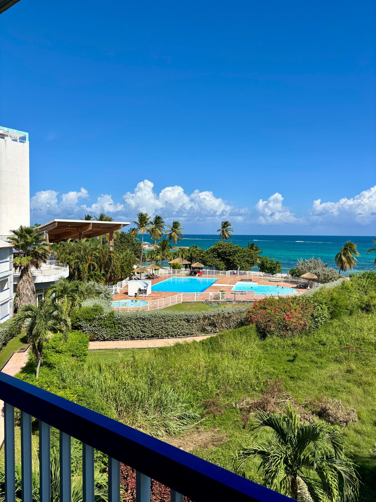 Estudi amb terrassa, cuina equipada, vistes al mar, plaça d'aparcament, situat en una residència amb piscina infinita amb vistes a l'Îlet du Gosier. La residència és segura i està situada al poble de Le Gosier, a 10 minuts a peu de la platja de la datcha, restaurants i botigues. El lloc és ideal per a una parella de vacances. L'estudi disposa de forn, microones, cafetera, rentadora, nevera, TV, WI-FI.