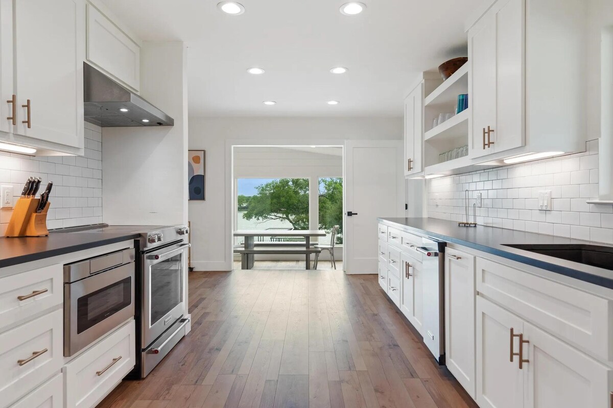 Et donem la benvinguda a la teva escapada de somni a la vora del llac LBJ. - Preciosa casa a la vora de l'aigua en una cala tranquil·la. - Capacitat per a 9 persones amb 3 dormitoris i 2 banys complets. - Espai obert amb unes vistes impressionants al llac. - Cuina totalment equipada amb electrodomèstics d'acer inoxidable. - Muelle privat amb bressol tritoon, banyera d'hidromassatge, barbacoa i menjador a l'aire lliure. - Cellers, camins i camps de golf a prop. - Situat a Granite Shoals, la ciutat dels parcs. - Wifi gratuït, accés independent i aparcament gratuït. - Vistes panoràmiques al llac.