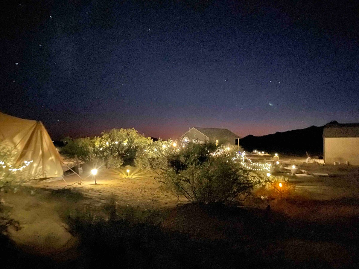 Sí, ho has llegit bé! Solar City Glamping ofereix mimoses Virgin, pizza fresca, cafè lleuger per esmorzar, barretes de granola i aigua potable de cortesia! El sopar és totalment GRATUÏT la primera nit, com a agraïment per formar part de la nostra família Glamping! Aquest complex turístic únic amb energia solar ofereix edredons suaus a totes les vil·les de luxe. Com que la propietat és 100 % ecològica, està equipada amb vàters biodegradables, bosses de dutxa solars i molt més! És hora de fer glamping! Això sí: porta la teva pròpia manta.