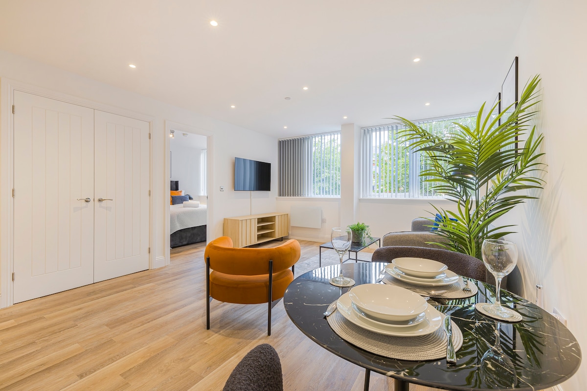 ★ Pis lluminós d'1 dormitori | 1 bany | Gravesend ★ Ideal per a hostes solitari, parelles, contractistes o viatgers de negocis, aquest apartament modern ofereix comoditat i conveniència al cor de Gravesend. Gaudeix d'un dormitori lluminós, un bany modern, una cuina totalment equipada i una sala d'estar acollidora i oberta amb televisor intel·ligent i wifi ràpida. I amb trens a Londres en només 25 minuts, a més d'un accés fàcil a la costa de Kent, és la base perfecta per a la feina o l'oci. Capacitat per a 2 persones.
