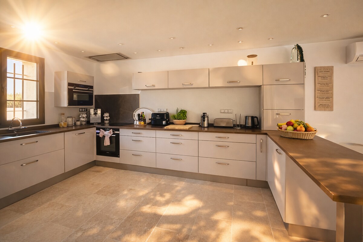 La bastide du Levant de 140 m² ofereix 3 dormitoris dobles amb 2 banys, a la planta baixa una bonica sala d'estar amb una gran sala d'estar, menjador, cuina totalment equipada i zona de llar de foc que dona a una àmplia terrassa. Aire condicionat, calefacció i wifi. jardí tancat de 800 m2 amb robles, flors de colors i herbes aromàtiques. El jardí està moblat amb una piscina climatitzada de 8x4m, bany, casa amb piscina equipada amb una barbacoa d'ou verd i terrasses amples.