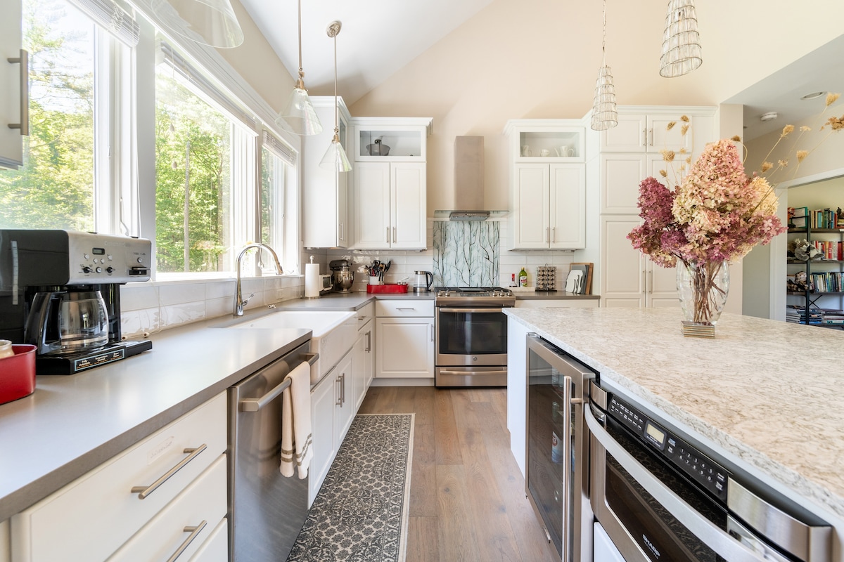 Et donem la benvinguda a la casa rural de Barrington House! The Barrington House es troba a les serenes muntanyes Berkshires, que durant molt de temps han estat un santuari per als cansats habitants de la ciutat que busquen espai per respirar, un refugi perfecte per a artistes, escriptors i pensadors. Els seus extensos terrenys ofereixen unes vistes impressionants de valls exuberants i cims llunyans, mentre que l'interior disposa d'una llar de foc, un acollidor racó de lectura i finestres il·limitades que conviden el món natural de l'interior.