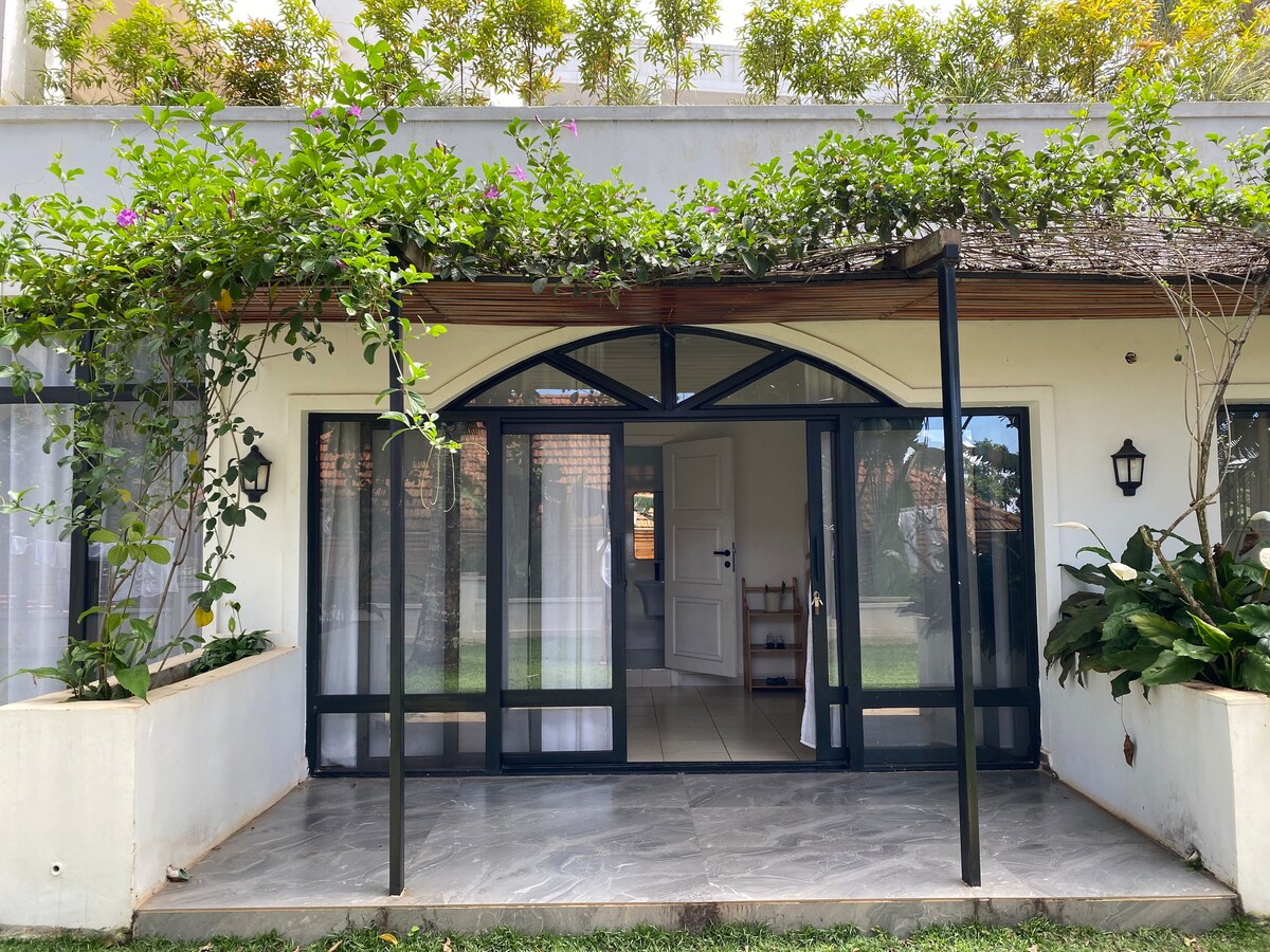 Habitació còmoda i acollidora amb entrada independent, ventilador de sostre i aire condicionat, totalment moblada, en una vil·la amb piscina infinita (per nedar i relaxar-se) situada a 1 minut a peu de la preciosa platja de sorra blanca de Paje, un dels millors llocs de l'illa de Zanzíbar per la seva platja/mar, la seva vida nocturna i les seves activitats esportives (kitesurf en particular). Estarem encantats d'allotjar-te! Ens veiem aviat a Paje!