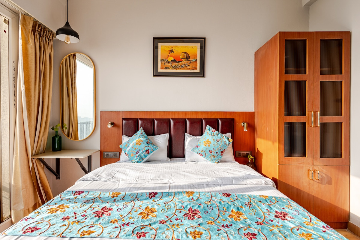 El primer pis de 2 Bhk que compleix tots els requisits ✨ - 2 dormitoris ( dormitori principal, segon dormitori) - 2 llits «king size». - Una sala d'estar espaiosa amb una disposició de seients còmoda. - 2 banys ( 1 a cadascun dels dormitoris) - Cuina petita (amb tots els estris bàsics de cuina disponibles i equipament i serveis, és el lloc perfecte per preparar els teus àpats preferits) - Una zona de balcó compartit que connecta amb l'apartament, que pot ser l'espai perfecte per a les teves passejades nocturnes. Reserva ara!