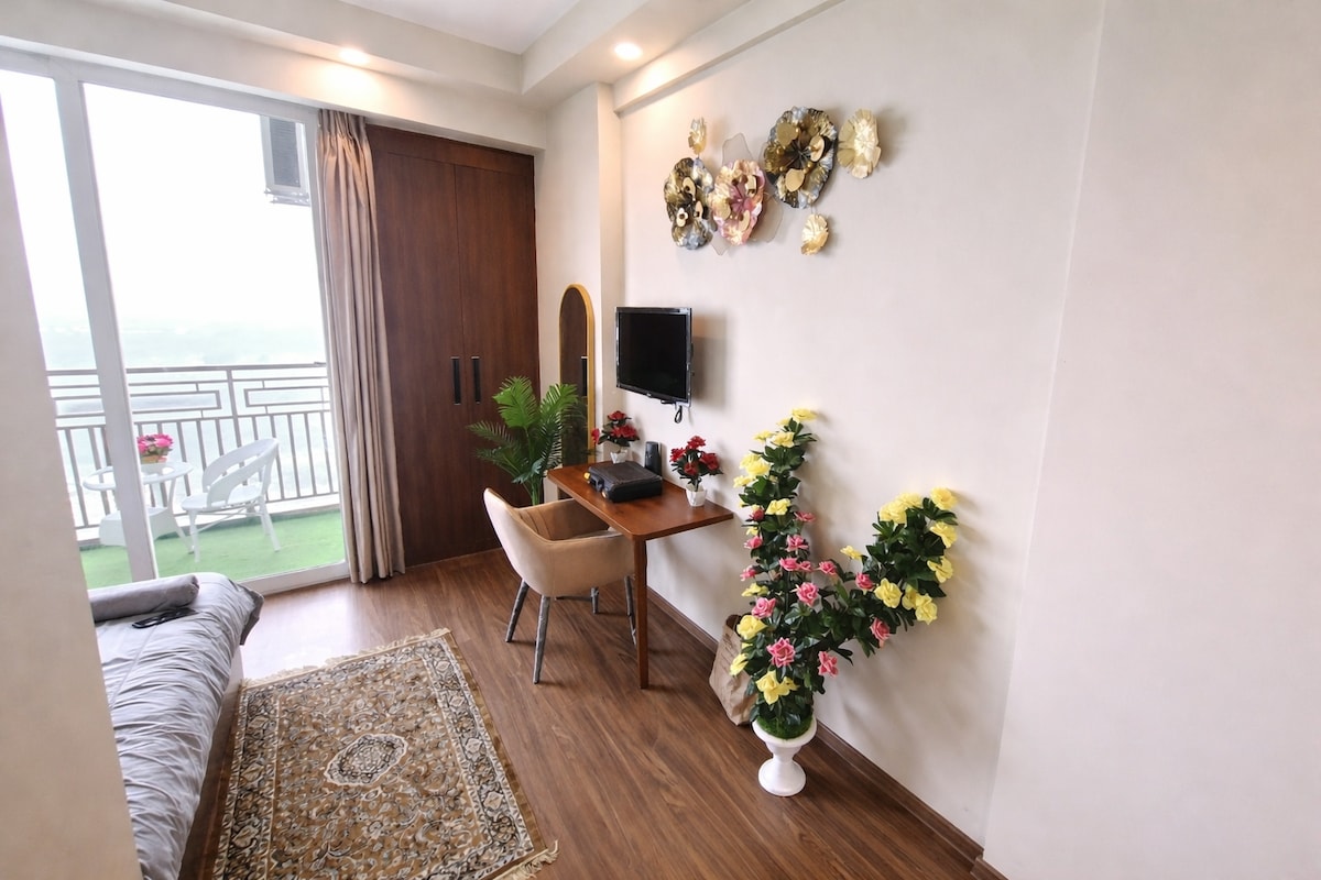 🌆 Luxury High-Floor City Skyline Retreat | Near Gaur City Mall Experience comfort, privacy, and elevated living in this beautifully designed studio. Ideal for couples, solo travellers, and business guests, this space is thoughtfully curated to deliver a peaceful stay while keeping you close to major conveniences, business hubs, and lifestyle destinations. Whether you’re visiting for work, a short city escape, or a relaxing weekend, this apartment offers the perfect balance of comfort and luxury