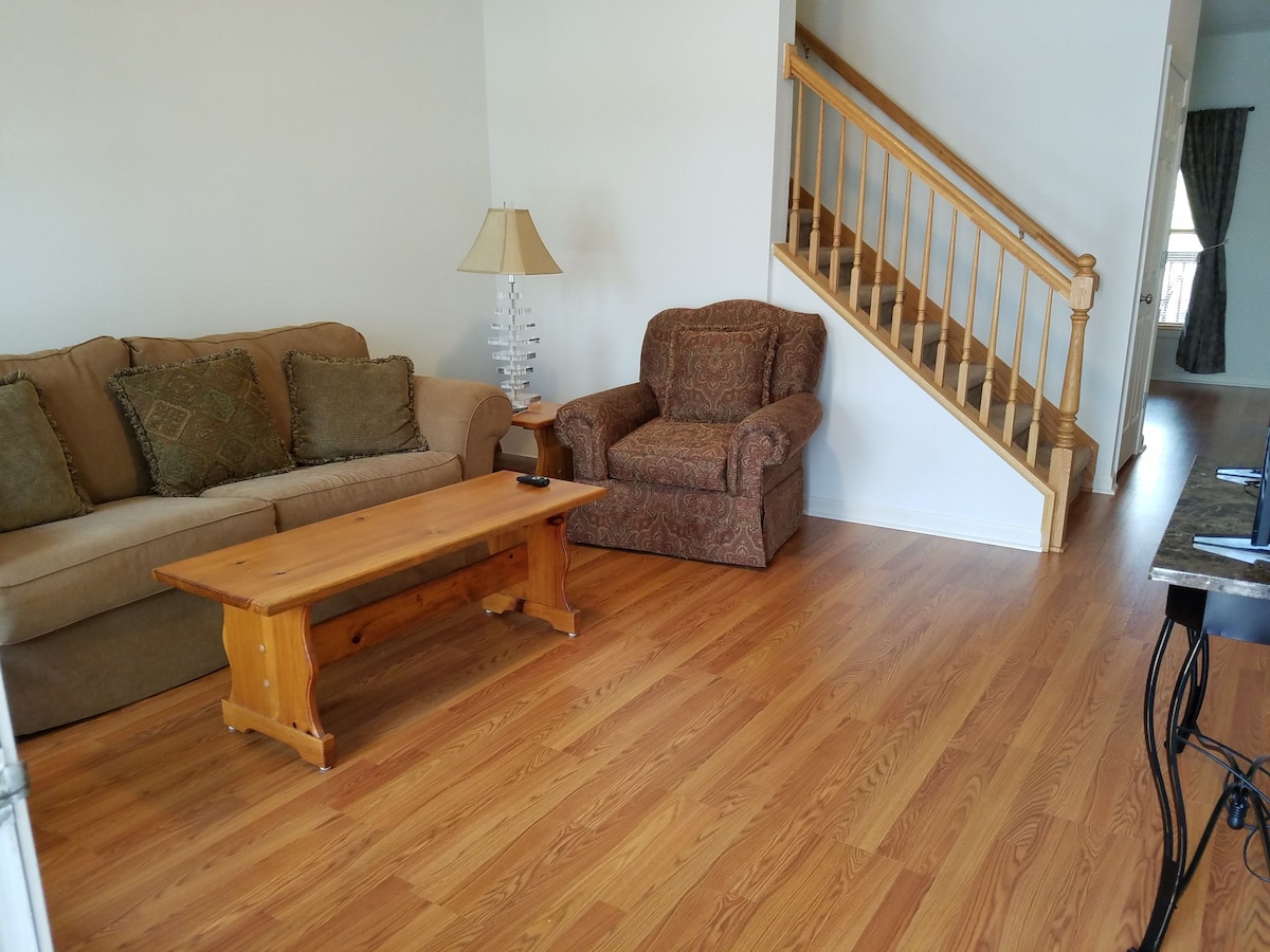 Vine a relaxar-te en la nostra escapada moderna i acollidora! Acabo de construir el 2022, gaudiràs d'aquest dúplex ben equipat. 2 dormitoris, el principal té un llit «king size», el segon dormitori té un llit «queen size» i la sala d'estar/oficina té un llit plegable. Submergeix-te en la nostra increïble banyera d'hidromassatge al pati del darrere. Totes les comoditats de la llar, incloent-hi la roba de llit i una cuina ben equipada. Els petits electrodomèstics de cuina per al teu ús són una torradora, una cafetera keurig, una freidora d'aire i una màquina de gofres. A prop de GSP, Greer Station, Lyman Lake Lodge