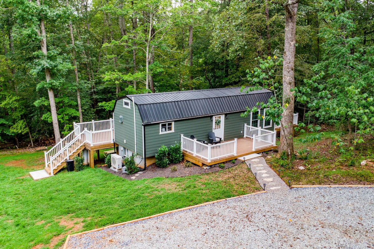 Brand new custom built 2 bedroom getaway surrounded by 6 private acres. Amazing views thru the 9 panel front glass windows or on the large patio and a one of a kind walk in shower with rain fall head. Kick back and relax in this calm, stylish space. Only 10 min. from Liberty University. This house is for no more then 6 people and local reservations will be asked to provide additional information.