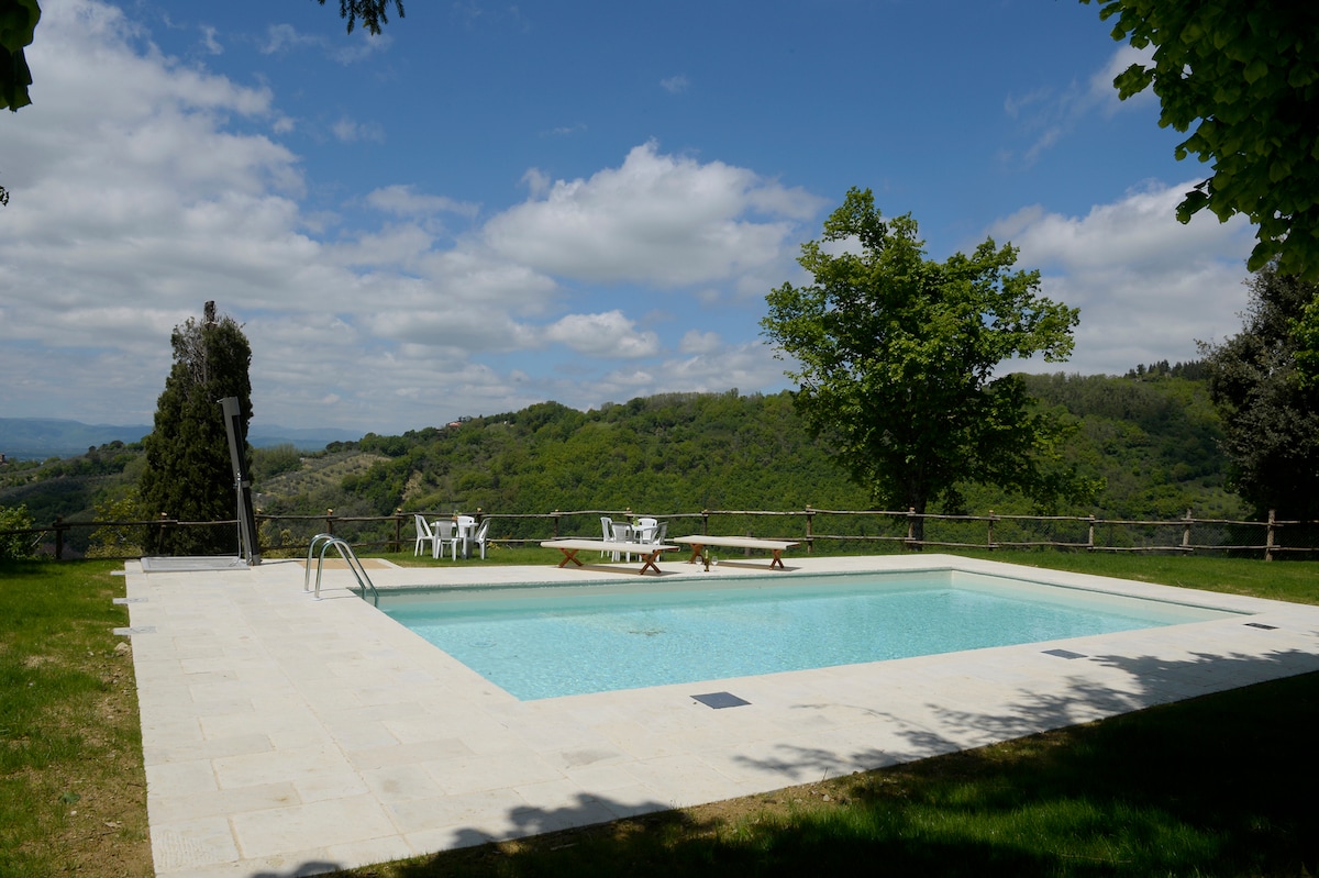 A mig camí entre Pisa i Florència, aquesta casa disposa d'una gran terrassa panoràmica, equipada amb gandules i una gran taula per menjar a l'aire lliure. A sota, un jardí penjat a la propietat té vistes a una de les vistes més sorprenents de la Toscana. La ubicació és estratègica, al cor d'un antic poble medieval, que ara alberga un museu d'art contemporani a l'aire lliure. Peccioli és un gran punt de partida per a aquells que volen visitar les ciutats artístiques de la Toscana o submergir-se en la vida local,