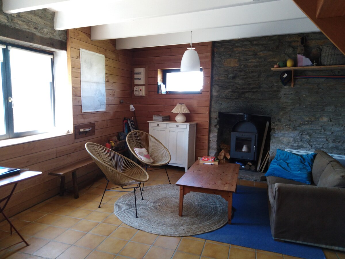 Petita casa familiar situada al camp, a l'entrada d'un llogaret. Els finestrals donen accés a la terrassa i al petit jardí privat. La sala d'estar exterior està protegida sota el pati. Vivim a la casa contigua, no hi ha vista directa, i compartim el pati d'entrada i l'aparcament amb la casa rural. Probablement coneixeràs els nostres 2 gats i de tant en tant potser escoltaràs el lladruc del nostre gosset. Botigues i supermercat a 2 km a Bourg de Moelan, mercat els dimarts Estació a 15 minuts