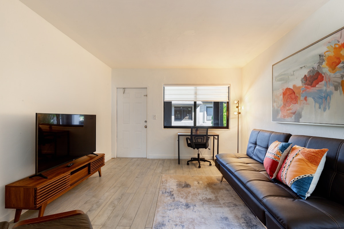 Et donem la benvinguda al nostre encantador pis de 2 dormitoris a Shenandoah, a pocs minuts de Brickell, Little Havana i Coral Gables. Aquest acollidor allotjament té capacitat per a un màxim de 6 hostes, per la qual cosa és perfecte per a famílies o grups. Hi trobaràs una sala d'estar elegant, una cuina totalment equipada i 2 banys elegants. Descobreix la diversa cultura i les atraccions de Miami amb facilitat des d'aquesta còmoda base! Vine a allotjar-te amb nosaltres! Serà preciós.