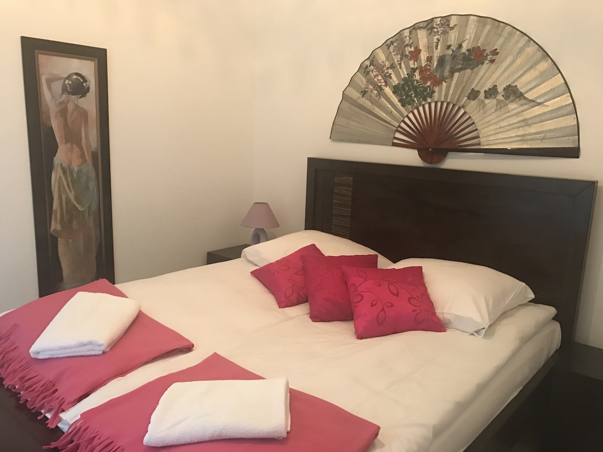 Apartament acollidor però còmode de 2 habitacions, envoltat de colors càlids,assolellat,amb un gran balcó en el qual el sol es queda fins a la posta de sol. Hi ha una cuina petita amb estris bàsics,nevera, placa calefactora, te, sucre i la cabina de dutxa del bany, lavabo amb un gran taulell de granit, mirall, tovalloles, paper higiènic, assecador de cabells a la sala d'estar, televisor LCD, equipament d'alta definició a la sala hi ha un penjador de roba, un armari gran,a l'armari del dormitori, armaris de nit i una taula.