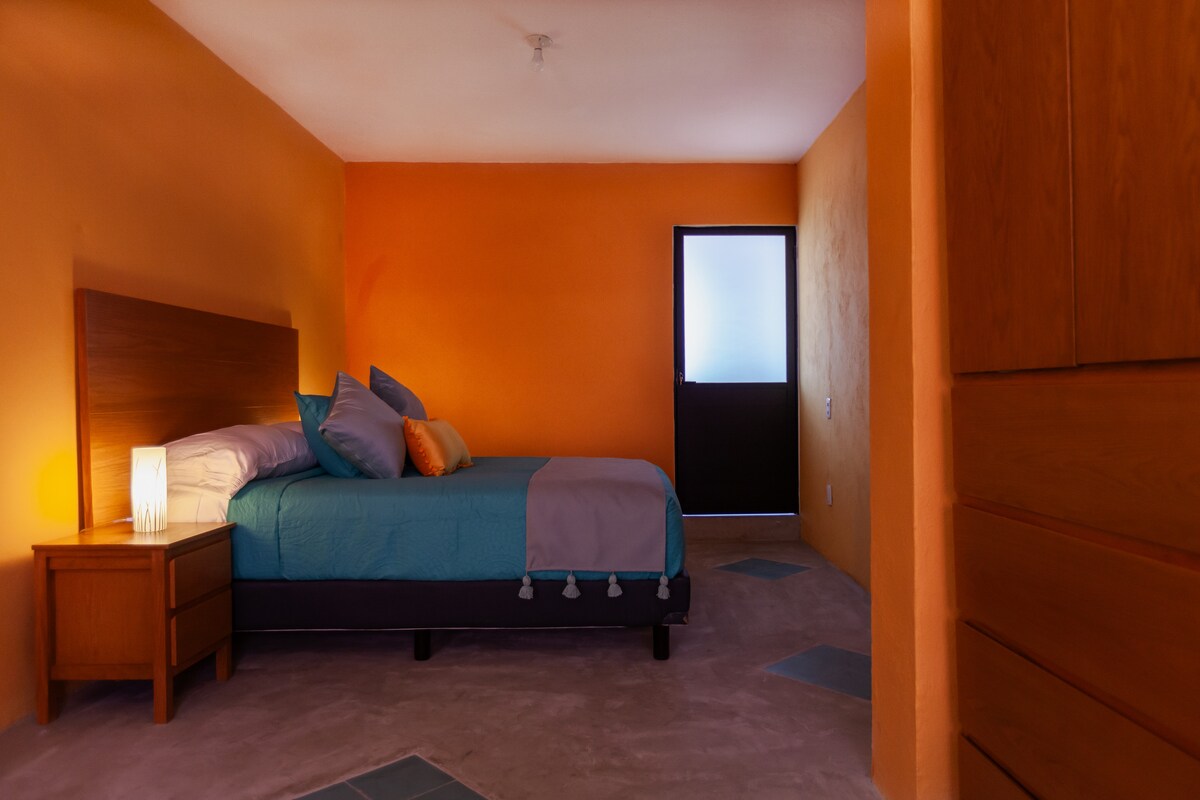 Recámara en planta baja con cama matrimonial, minicocineta y baño privado, pensada en el confort de 1 persona (6 m2) aunque suele albergar una 2da persona (costo adicional), en un espacio creado como santuario para aves diurnas y nocturnas. Nuestro check in comienza a partir de las 14.00 hrs., aún así podemos resguardar tu equipaje en nuestros locker sin costo adicional a partir de las 09:00 hrs. Nuestro early check in/late check out tiene un costo de $150 M.N por hora (sujeto a disponibilidad)