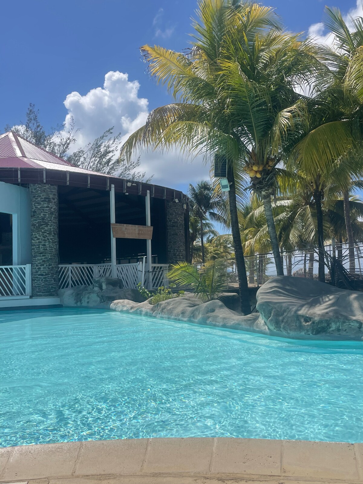 Et donem la benvinguda a Carambole Paradise! Estudi completament reformat amb una vista al mar absolutament esplèndida al centre d'oci idíl·lic de Sainte Anne, entre magnífiques platges, piscines i jardins tropicals. L'allotjament del primer pis, i no s'ha passat per alt, està perfectament situat dins d'aquest lloc tancat i segur. Accés gratuït a nombroses activitats, esdeveniments i instal·lacions.
