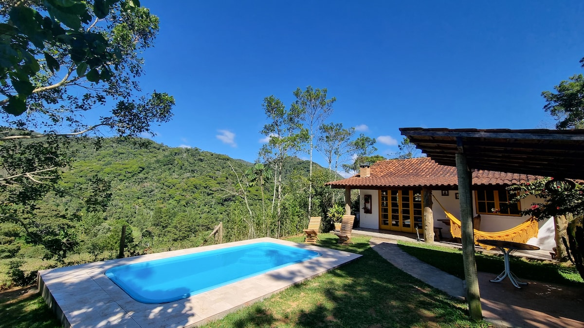 @experiencia.homm porta una casa amb l'encant de les muntanyes de Rio de Janeiro! Estem situats en un complex residencial, garantint la seguretat i la tranquil·litat dels nostres hostes. Tenim tota l'estructura per a una estada perfecta, amb piscina, sauna, barbacoa i una bonica vista a les muntanyes. Llar de foc, so ambiental i una habitació molt acollidora per als dies més freds! També tenim un forn de llenya per fer pizzes, una gran gespa i una foguera a l'exterior que et farà gaudir del veritable clima de muntanya.