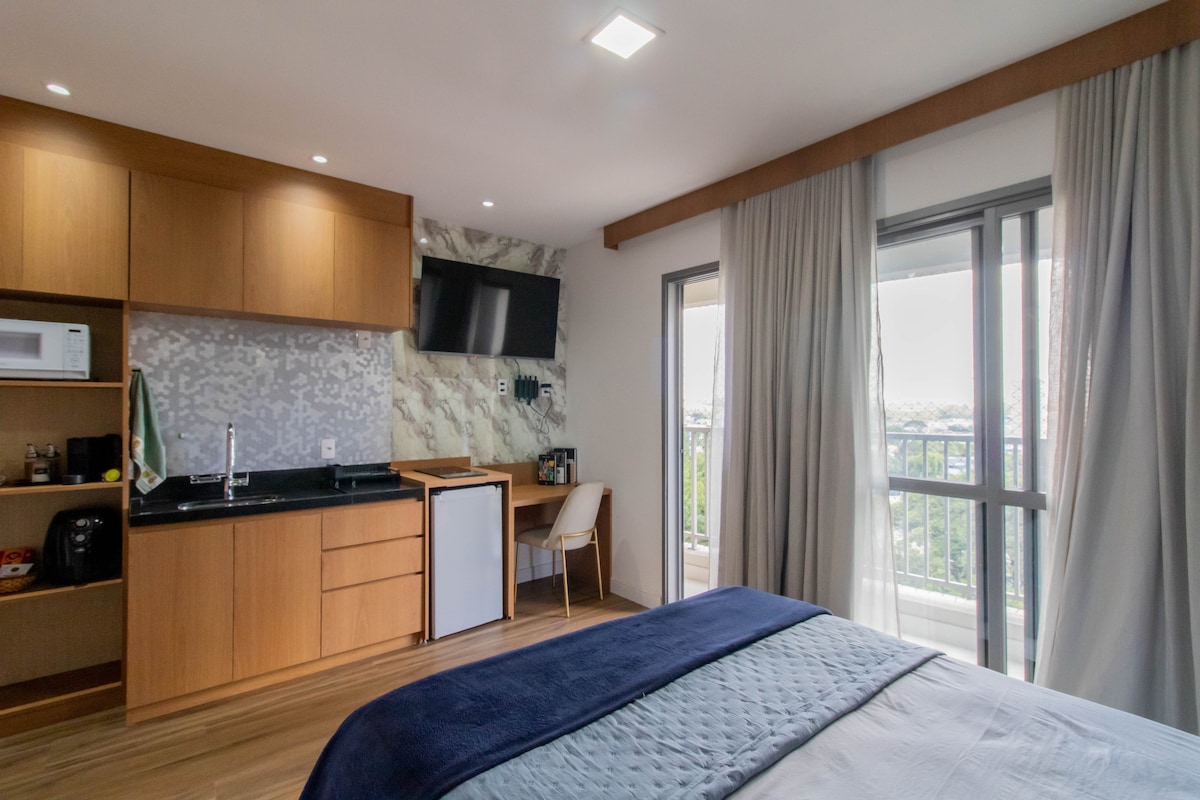 Et donem la benvinguda a l'Estudi 1310, un espai únic que combina sofisticació i funcionalitat. Amb un acabat d'alta qualitat, l'estudi s'ha dissenyat per oferir comoditat i funcionalitat, i és ideal per a diferents tipus d'estades. Estem a prop de l'aeroport internacional de Guarulhos, amb accés fàcil a restaurants, mercats i serveis bàsics. L'espai ofereix unes vistes agradables de la ciutat, perfectes per relaxar-se entre vols o gaudir d'una estada còmoda a prop de São Paulo.