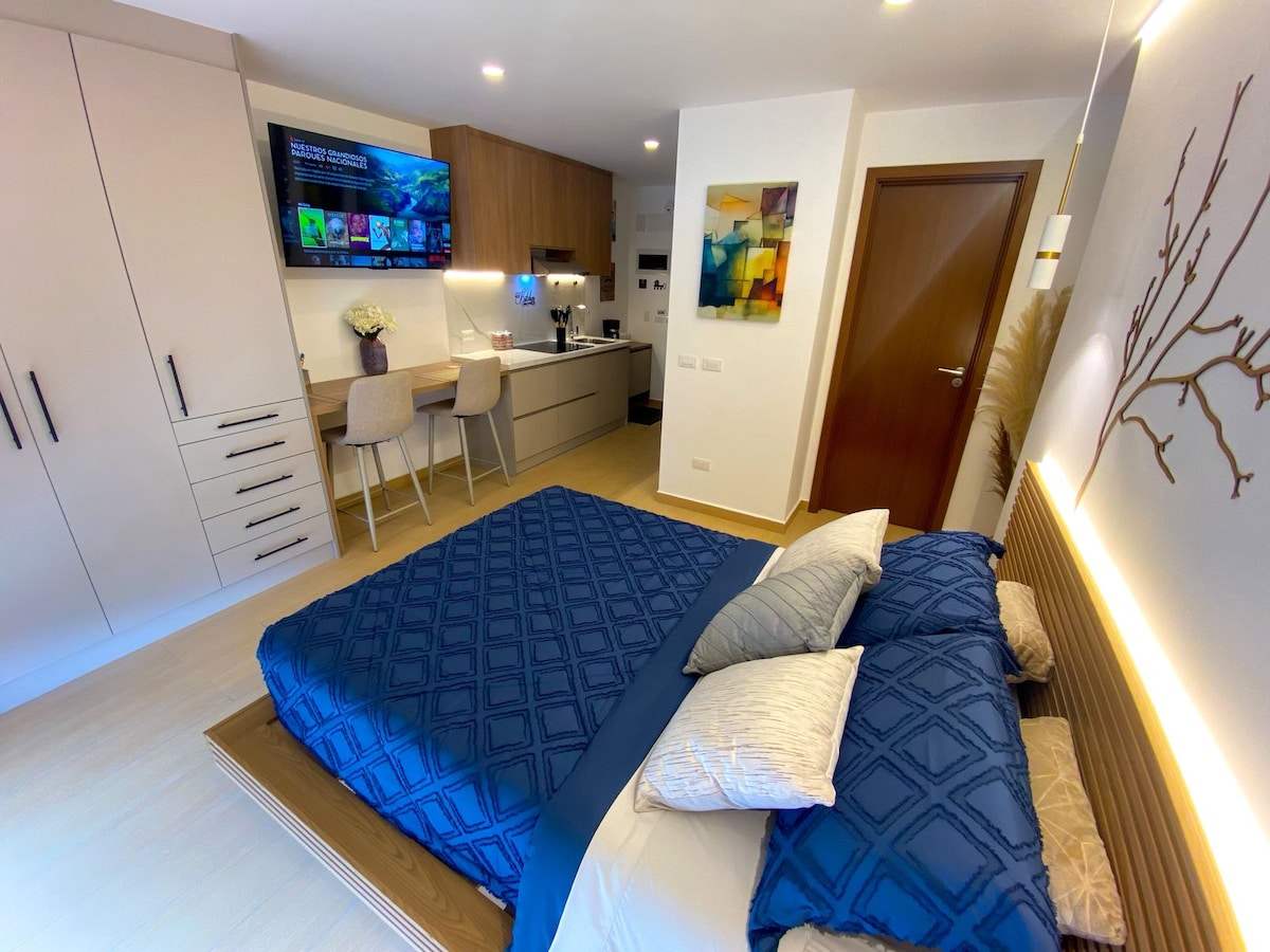 Suite privada i independent, envoltada de natura i amb una vista relaxant, situada a 20 minuts de l'aeroport. Ideal per a parelles o viatgers que busquen descans, privacitat i accés fàcil a la ciutat. Té: -Parqueadero gratuït - Llit de mida «queen» amb llençols de primera qualitat i cortines fosques - Cuina equipada - Bany privat amb aigua calenta. - Internet ràpid amb wifi - Televisor intel·ligent. -Cafè de filtre i sucre Gaudeix del jardí i de la zona de la foguera en un ambient tranquil i segur, amb un clima espectacular.