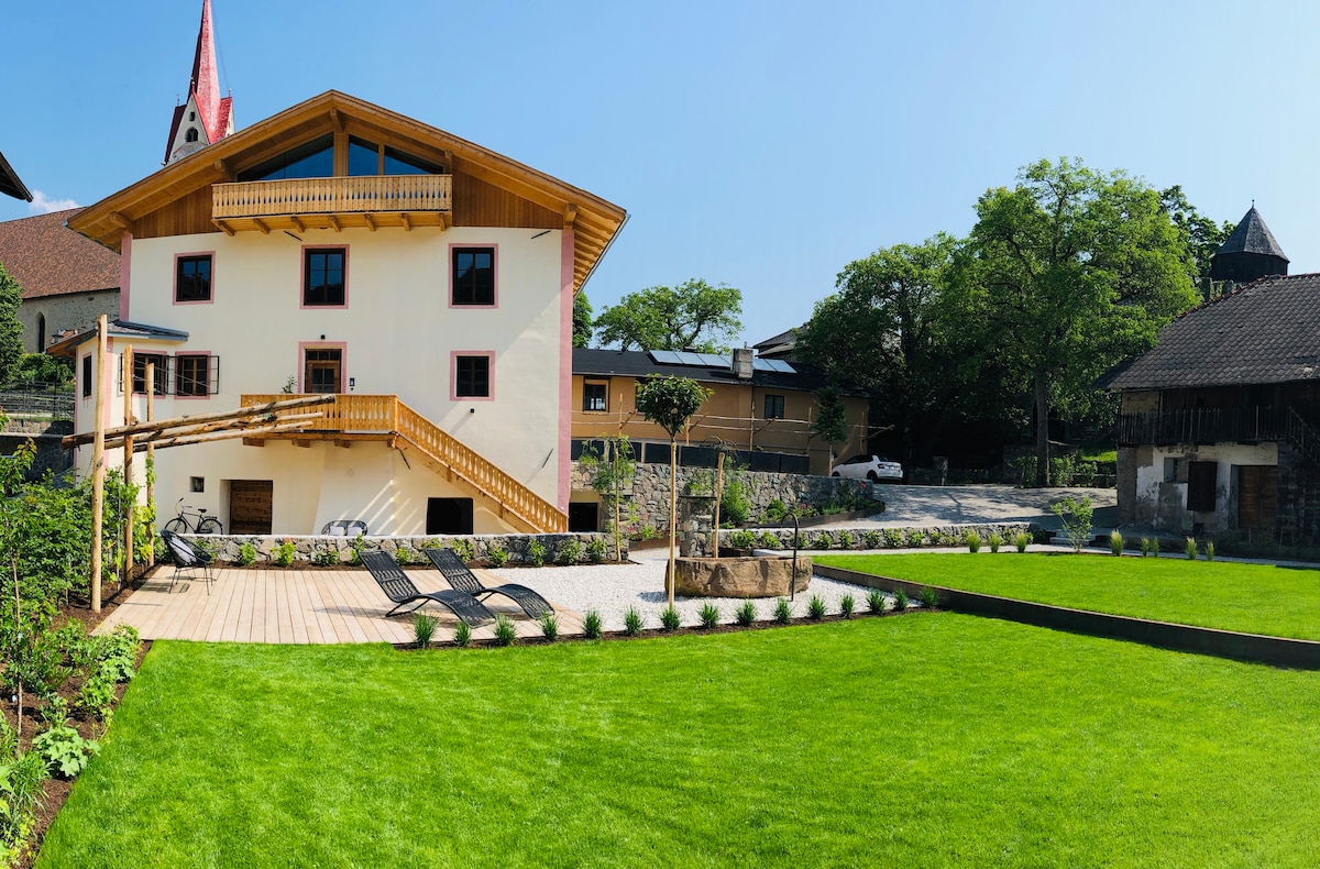 Un dels cinc apartaments delicadament reformats situats al segon pis d'una masia amb encant i caràcter. És un dels edificis més antics d'un petit i còmode poble del Vallès d'Isarco, al nord d'Itàlia. Ens trobem al centre del Tirol del Sud, cobert pel sol, a la part superior d'una collita a l'entrada de les valls de Gardena i Funes. A prop de les muntanyes de dolomita però no lluny de les populars poblacions de Bolzano i Bressanone, és un punt de partida ideal per explorar la regió.