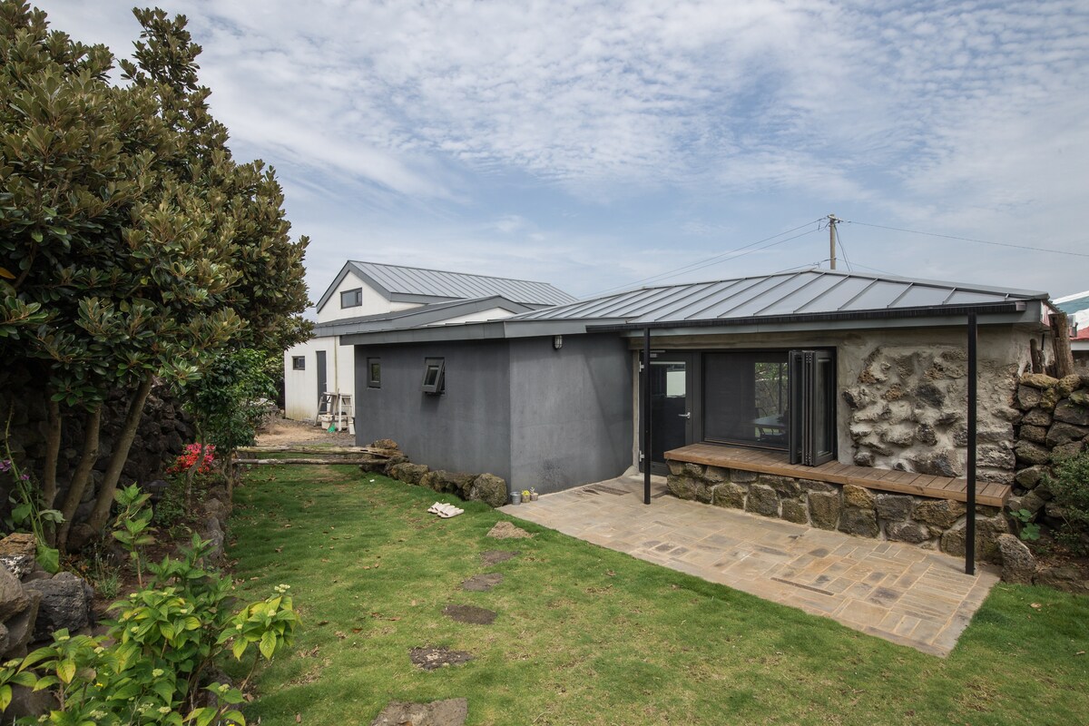 Es tracta d'una casa de pedra de Jeju situada en un tranquil poble marítim a l'est de l'illa de Jeju. - Està a 3 minuts a peu del mar. Hi ha cafeteries i restaurants famosos a prop. -Els projectors de raigs i les pel·lícules emotives estan disponibles per veure'ls al llit i a la taula del menjador. - Es pot sentir Jeju en una casa decorada amb parets de pedra de Jeju i flors seques, i - es pot gaudir d'un veritable descans mentre es mira un pati privat. -Hi ha una instal·lació de cuina per fer cuina senzilla, i preparem un autodesayuno (pa, melmelada, mantega, suc, cafè, fruita, etc.).