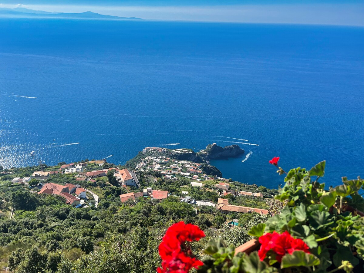 Casa Tuti is down from the main road,only accessible by a 10 minutes walk and some steps, located in the fishermen area of the villageof Praiano, in an extremely quiet area. Surrounded by local properties and wonderful vegetable gardens, we all grow our own produce of the season. The view from the house is 180 degrees, from Positano to the right to the Isola de Li Galli in front, at the horizon Capri and the Faraglioni rocks, to the Amalfi Coast Peninsula back to Casa Tuti.