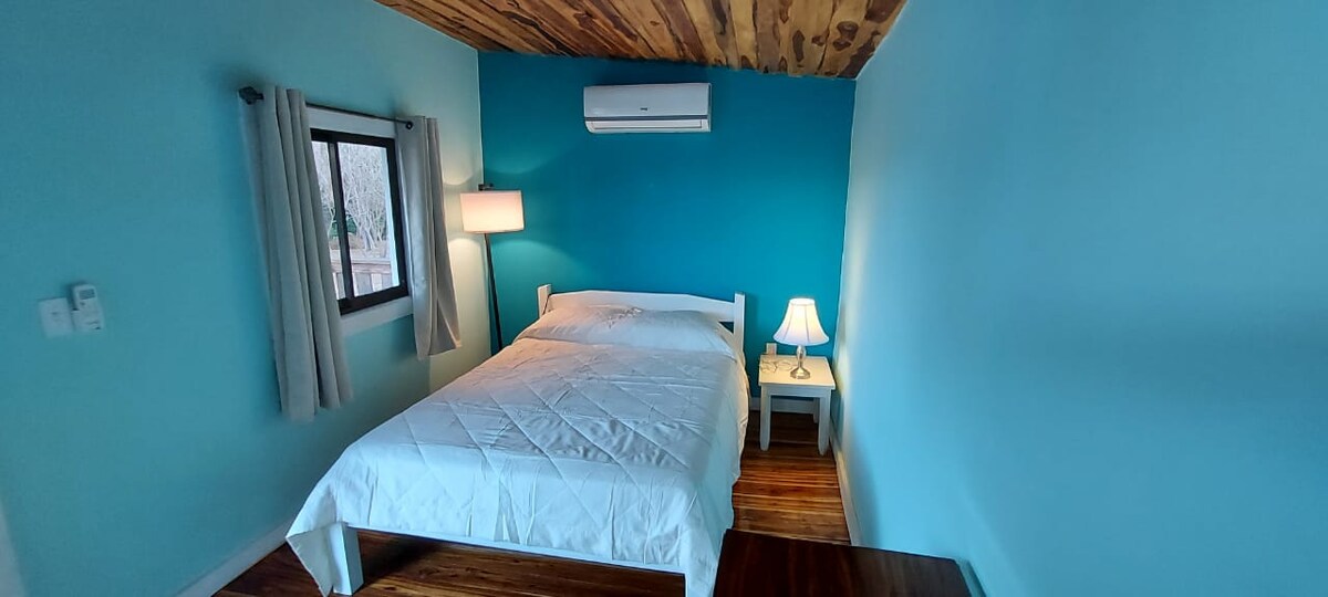Casita de la Luna and its fraternal twin, Casita del Sol (airbnb.com/h/casacelajes-sol) make up the first floor of a newly-built house on the ocean, at the mouth of Rio Nosara. Peaceful, quiet, a bit away from Guiones and Pelada, but close enough you can walk, drive or grab a tuktuk. Enjoy your own entrance and a beautiful shared beach-front salt-water pool overlooking the wilderness. Swim, explore tide pools, SUP on the river, or surf empty waves just steps away.