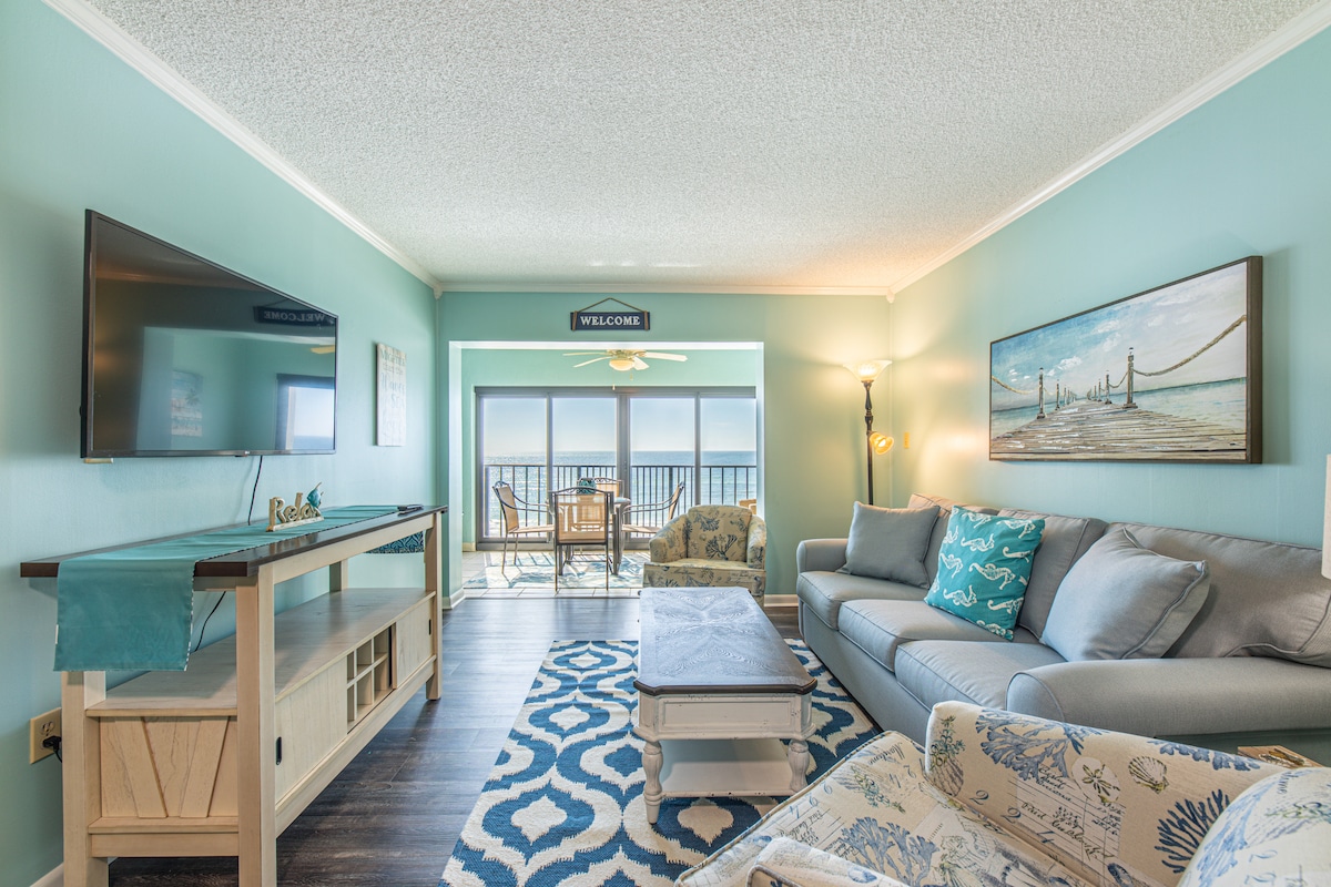 2 habitacions + habitació amb llitera ~ A primera línia de platja amb vistes, capacitat per a 8 persones! • Fabulosa vista directa de les platges de sorra blanca del Golf • Suite Master King amb bany principal amb banyera jacuzzi, dormitori Queen secundari, habitació llitera • Balcó de 8' x 24' a tota la unitat amb mobles còmodes a l'aire lliure, perfecte per contemplar la platja • Televisors intel·ligents de pantalla plana, paviment de rajoles nou, rentadora i assecadora de mida completa a l'allotjament • A peu de platja, a peu dels restaurants i de la vida nocturna • Aparcament a la mateixa planta de l'allotjament • Pagament a l'allotjament