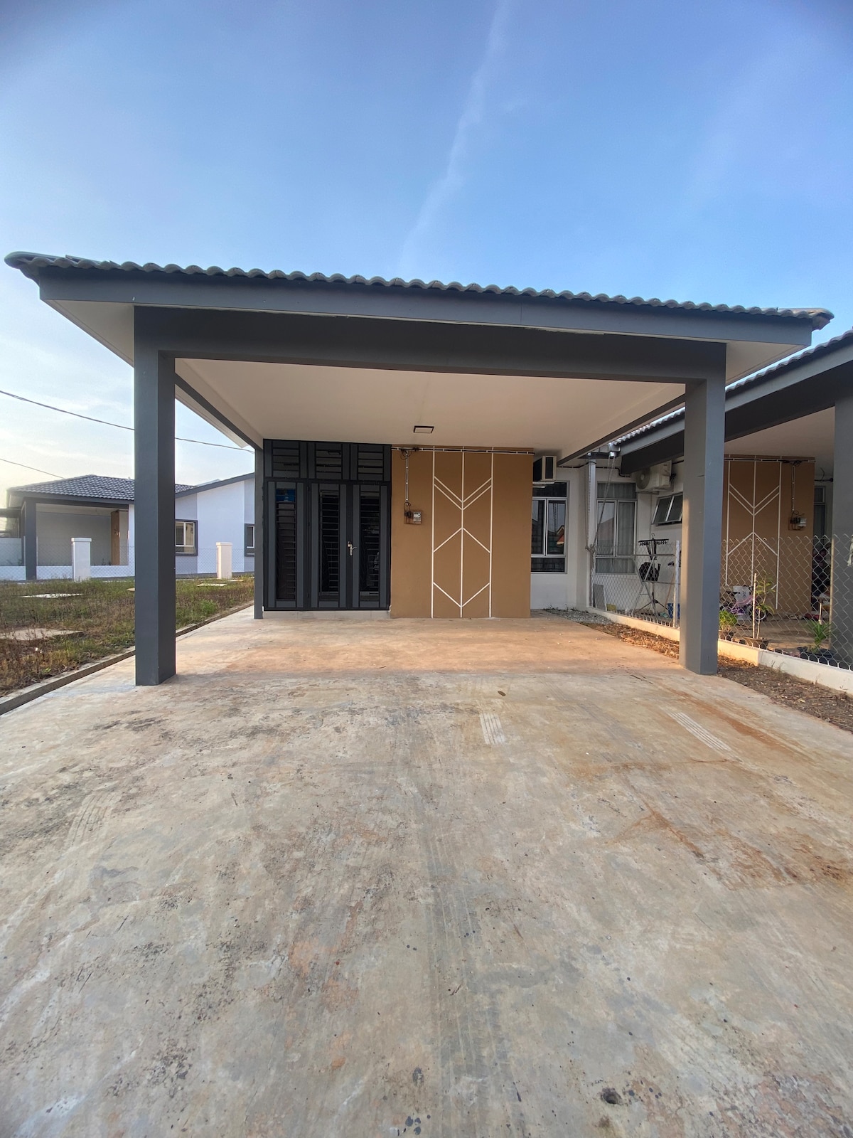 Casa d'una sola planta de 3 dormitoris Semi D 🛏 Habitació principal: llit «queen size», bany privat + 2 Sejadah (estora de pregària) 🛏 Habitació 2: llit «queen size» 🛏Habitació 3: llit individual (Les habitacions 2 i 3 comparteixen el bany) 👨👩👧 Comoditat per a 5, màxim 8 persones 🛋️ Hi ha disponible un matalàs addicional a sol·licitud (s'aplica un càrrec addicional) ❄️ Aire condicionat a tots els dormitoris + sala d'estar i menjador 📶 Wifi gratuït 🍳 Cuina: nevera, placa d'inducció, torradora, filtre d'aigua (calenta/freda), olla arrocera, assecador, planxa i taula de planxar