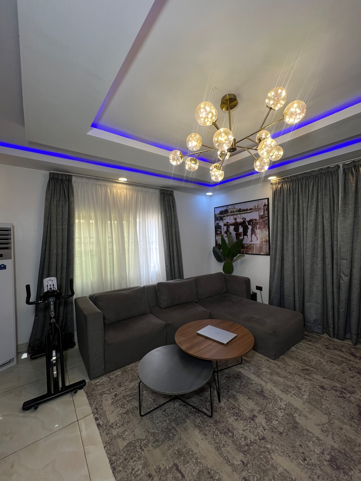 Relaxa't en aquest apartament tranquil i de disseny d'una habitació a Jahi, Abuja. Amb tons càlids i terrosos, una sala d'estar acollidora, un balcó privat i una cuina totalment equipada, és perfecte per a parelles, viatgers solitaris i persones que teletreballen. Gaudeix d'una wifi ràpida, d'interiors elegants i d'un ambient tranquil a pocs minuts del bullici de la ciutat. La teva llar lluny de casa.