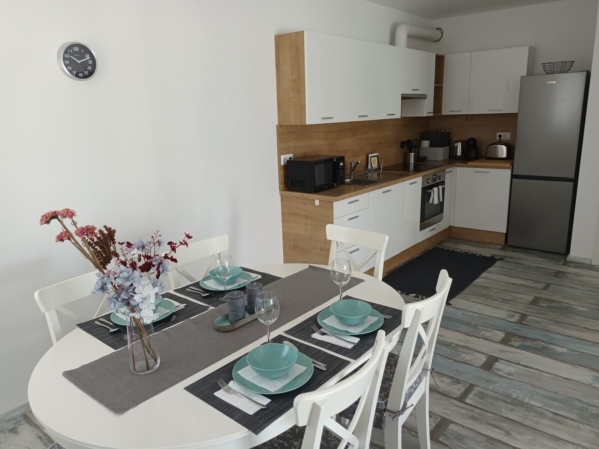 Us esperem amb molt de gust al nostre apartament de 68 m² de 3 habitacions. L'apartament està situat a la planta baixa i té un pati interior tancat amb zona de jocs, una terrassa privada i un aparcament a l'aparcament subterrani. En una zona tranquil·la, just al costat de la zona pantanosa del Mosoni-Danubi, a 10 minuts a peu del centre històric de Győr, de la universitat i de les aigües termals.