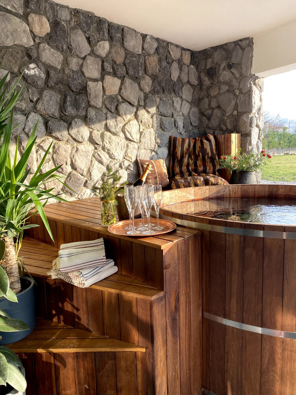 La nostra casa sencera de pedra i fusta de 2 plantes, situada a prop del centre d'esquí d'Erciyes, té capacitat per a 8 persones amb 7 llits + un sofà llit. La planta baixa ofereix una llar de foc, televisor intel·ligent, una gran cuina i un bany turc privat (hamam). La planta superior té 2 dormitoris, cadascun amb bany privat, televisor intel·ligent i mininevera. Un lloc càlid i acollidor per relaxar-te després d'esquiar. Aparcament gratuït disponible. Perfecte per a famílies i grups que busquen una casa de vacances d'esquí.