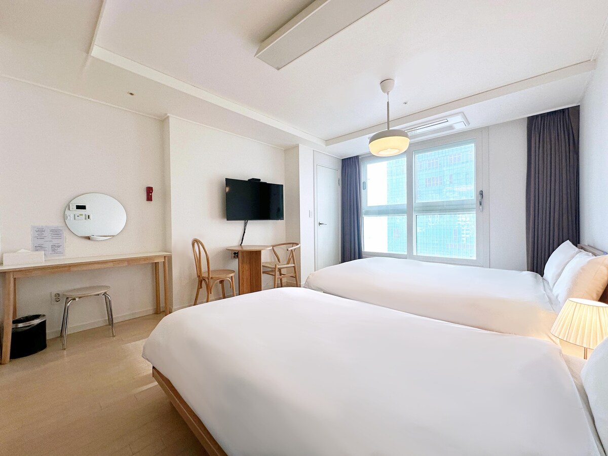 Aquesta és una habitació amb vistes a l'oceà de ThePlace34 situada al centre de Haeundae. És accessible amb un passeig de 5 minuts a la platja i un passeig de 3 minuts a l'estació de metro. Disposem d'un magatzem d'equipatge gratuït abans i després de l'arribada, cosa que facilita molt els desplaçaments. Totes les habitacions tenen purificadors d'aigua i Netflix i YouTube disponibles. Pots allotjar-te de forma segura i còmoda en un allotjament legal. ✅️Arribada / Sortida: (16:00 / 12:00)