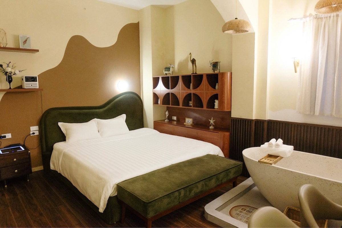 Căn hộ 2 tầng tại 49A Hàng Bài mang phong cách tối giản, ấm cúng, là điểm dừng chân lý tưởng cho gia đình nhỏ và các cặp đôi muốn tìm một không gian nghỉ ngơi nhẹ nhàng giữa lòng Hà Nội. Nằm ngay trung tâm quận Hoàn Kiếm, homestay vừa đủ riêng tư để thư giãn, vừa thuận tiện để bạn tản bộ tới Hồ Gươm, Nhà hát Lớn và khám phá nhịp sống đô thị sôi động. Mỗi khoảnh khắc tại đây đều gợi cảm giác bình yên, chậm rãi và đầy gắn kết.