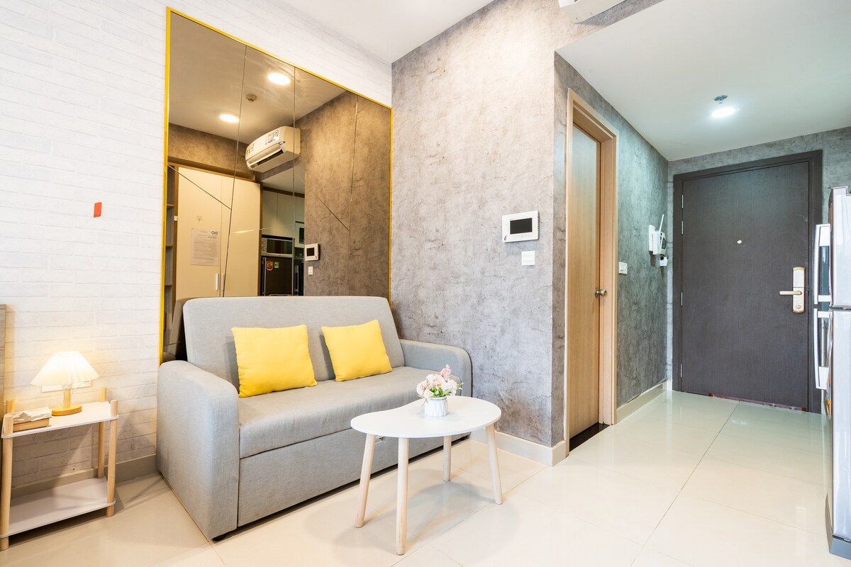 Aquest allotjament amb molt d'estil és perfecte per als teus viatges. EL PIS ESTUDI (planta 14) AMB VISTES MAGNÍFIQUES Aquest pis té 28 metres quadrats i està situat en un edifici de luxe i famós del centre de SAIGON. ## UBICACIÓ PERFECTA a★ 05 minuts del districte 1; 07 minuts del carrer Bui Vien; A 10 minuts del centre de la ciutat i del mercat de Ben Thanh en taxi/Grab. SERVEI DE RECOLLIDA A L'AEROPORT AMB TARIFA.