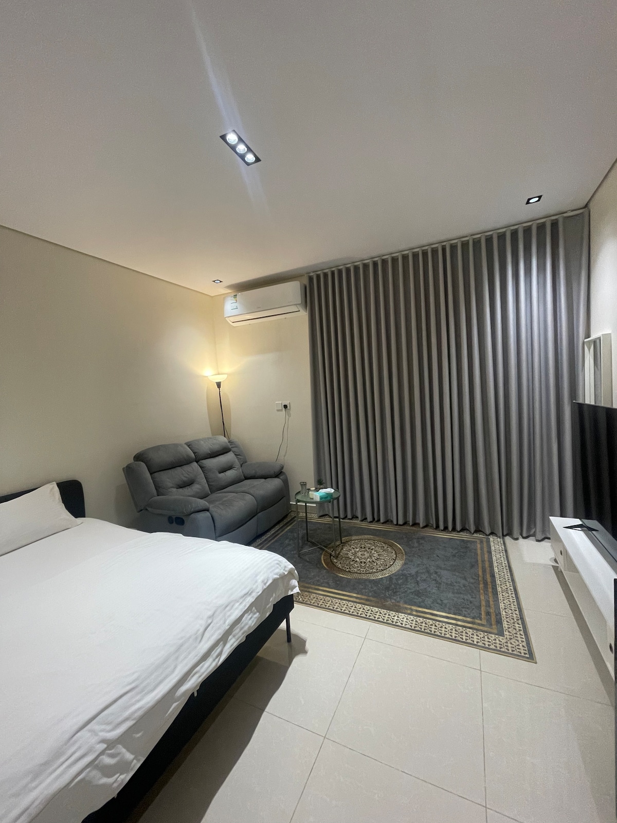 Una suite privada amb un disseny tranquil i una experiència d'estada de luxe en un dels barris més exclusius de Buraidah L'allotjament està dissenyat amb cura per donar-te la sensació d'un hotel de luxe amb total privacitat, amb una il·luminació càlida i un ambient acollidor, perfecte per relaxar-te o per gaudir d'una estada especial. ✨ Dormitori d'estil hoteler amb un llit molt còmode ✨ Sala d'estar elegant amb unes vistes precioses i un ambient tranquil ✨ Cafè i hospitalitat càlida ✨ Internet ràpid + televisor intel·ligent ✨ Molt de respecte per la privacitat i total tranquil·litat Apte per a: 💍 Escapada romàntica 🧘♂️ Relaxació i tranquil·litat 📸 Sessions fotogràfiques amb estil Una experiència diferent… no només un lloc on dormir