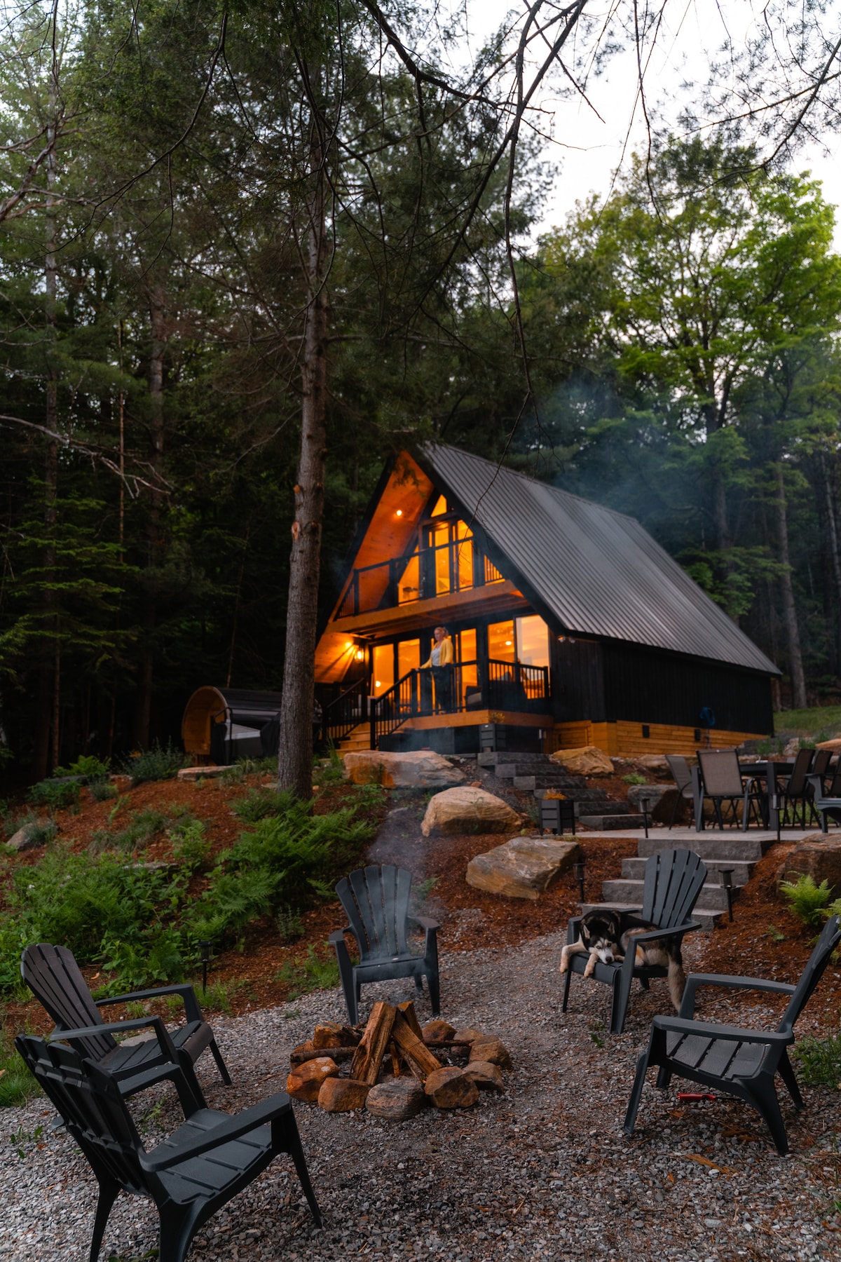 Gaudeix de la tranquil·litat del bosc i l'encant d'una caseta triangular. Desactiva el món exterior i gaudeix de la bellesa que ofereix cada temporada en aquesta acollidora caseta. Passa els dies explorant senders serpentejant a través de 50 hectàrees de bosc privat i les teves nits acollides al voltant d'un foc a l'aire lliure. A prop de botigues i restaurants locals a Haliburton Village (a 10 minuts en cotxe). Ideal per a un refugi en parella o una escapada familiar. STR-24-00027
