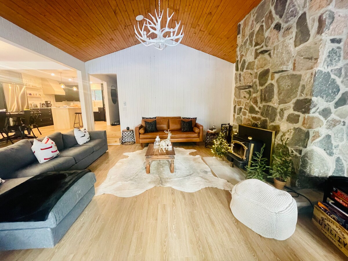 Our cabin is surrounded by majestic forest and is just minutes away from Eagle and Pine Lake beaches! Enjoy the charm of staying in a stylishly decorated log cabin, delight in a cup of coffee and light continental breakfast on the porch overlooking the picturesque view of the forest. A short drive to Haliburton & Minden and a 5 minute drive to Sir Sam's Ski Resort. After a fun-filled day, craft meals in our fully stocked kitchen and relax by the fire pit. Truly a retreat!