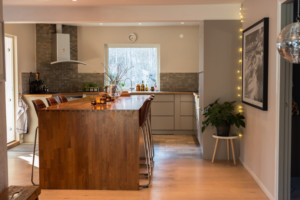 Lilla Lyngabo es troba amb el bosc a la part de darrere envoltat de camps i prats exuberants. A través de les grans seccions de vidre, surts directament a la natura, així com els dormitoris com a cuina. Com a únic hoste únic, gaudiràs de la tranquil·litat i la bellesa que envolta Lilla Lyngabo. Tot i la privacitat, està a només 2 km del camp de golf més proper, a 4 km del mar i a 10 km del centre de Halmstad i Tylösand. La reserva natural de Haverdals amb la duna de sorra més alta d'Escandinàvia i boniques rutes de senderisme es pot trobar de camí al mar.